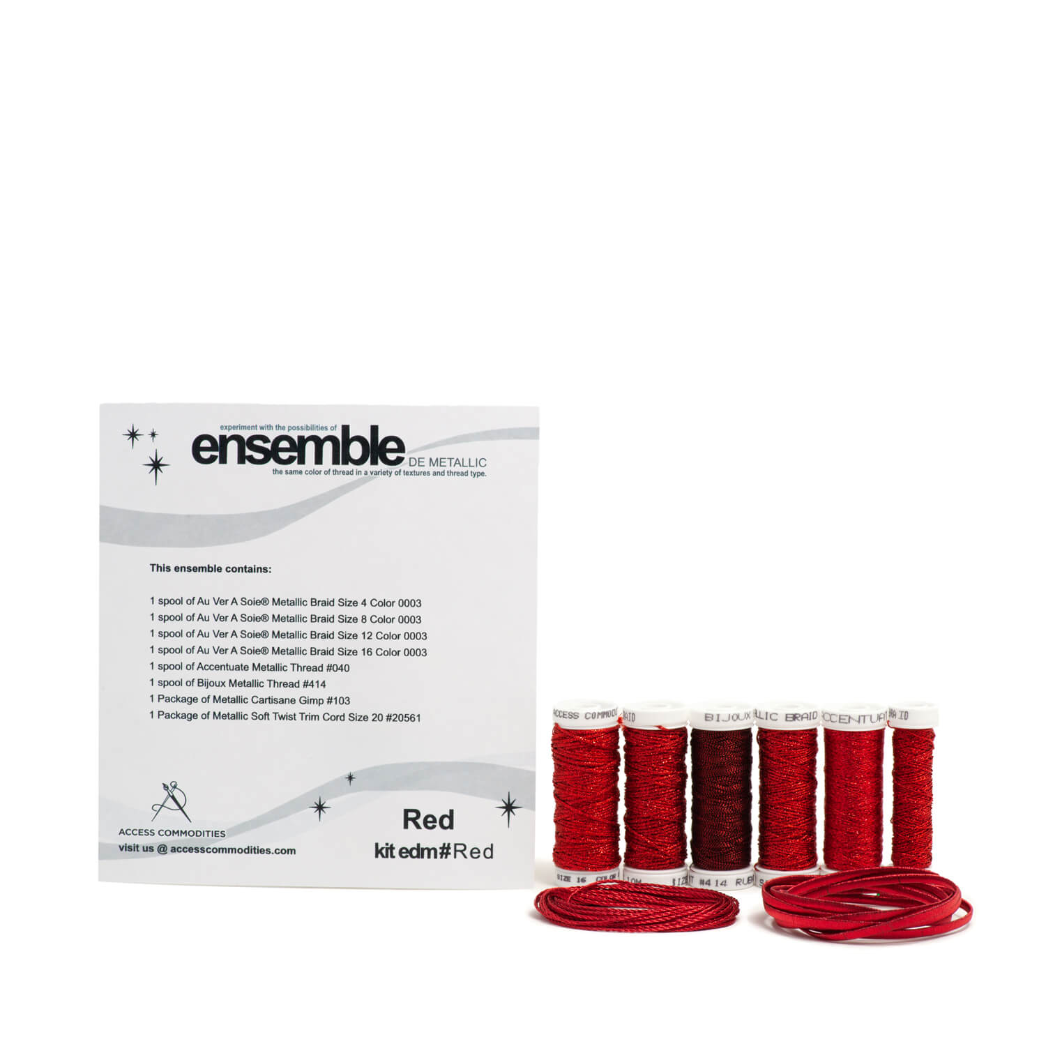 Add a sparkle to your needlework with the Ensemble de Metallic kits. This kit offers a wide variety of coordinating metallic threads to add a shine to your collection. Kit prices reflect the amount of contents which varies between colors.