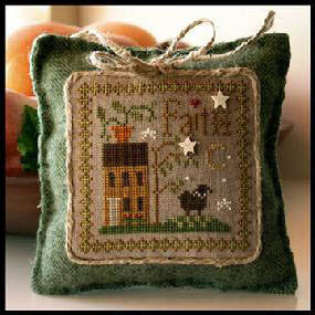 The designs are mounted onto wool and finished as pillows. Wool seems appropriate, don't you think? There are two fabrics used throughout: 30 count, R&R Dark Chino and 30 count Cocoa from Weeks Dye Works