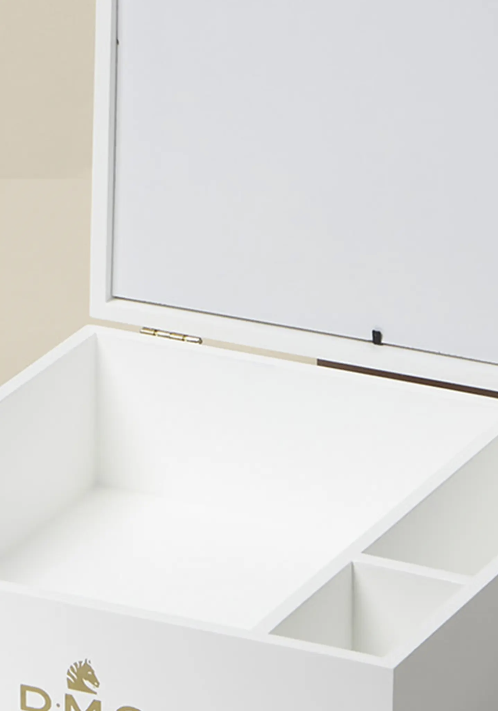 The portable top section of this three-layered modular storage box has three compartments ideal for storing smaller accessories and your current project. Take it from room to room so your project is always close at hand. Enjoy personalising it with a floral monogram which will show through the perspex window on the top. The fabric and pattern are included. Or choose your own design to personalise your box!