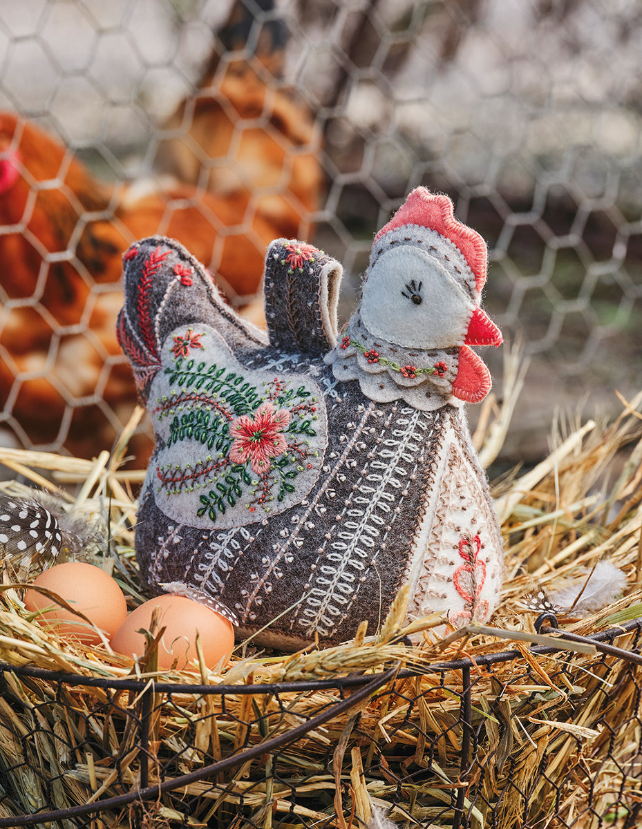 Welcome this fabulous felt hen doorstop with her pretty, embroidered plumage into your home.