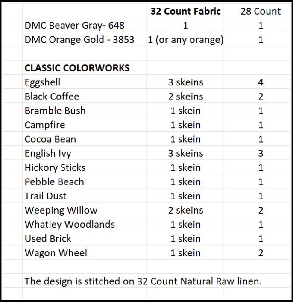 *I used Natural Raw Linen from Zweigart in 32 count for the large and small pieces.