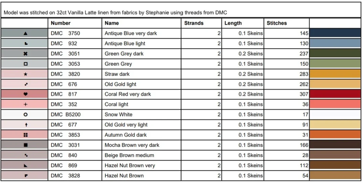 The models were stitched 2 over 2 on 32 count cream-colored evenweave using DMC threads. As always, feel free to customize fabric and floss colors to suit your style or décor.