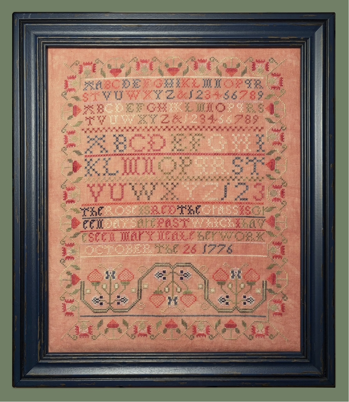 A reproduction of a sampler stitched in the year of our founding, 1776