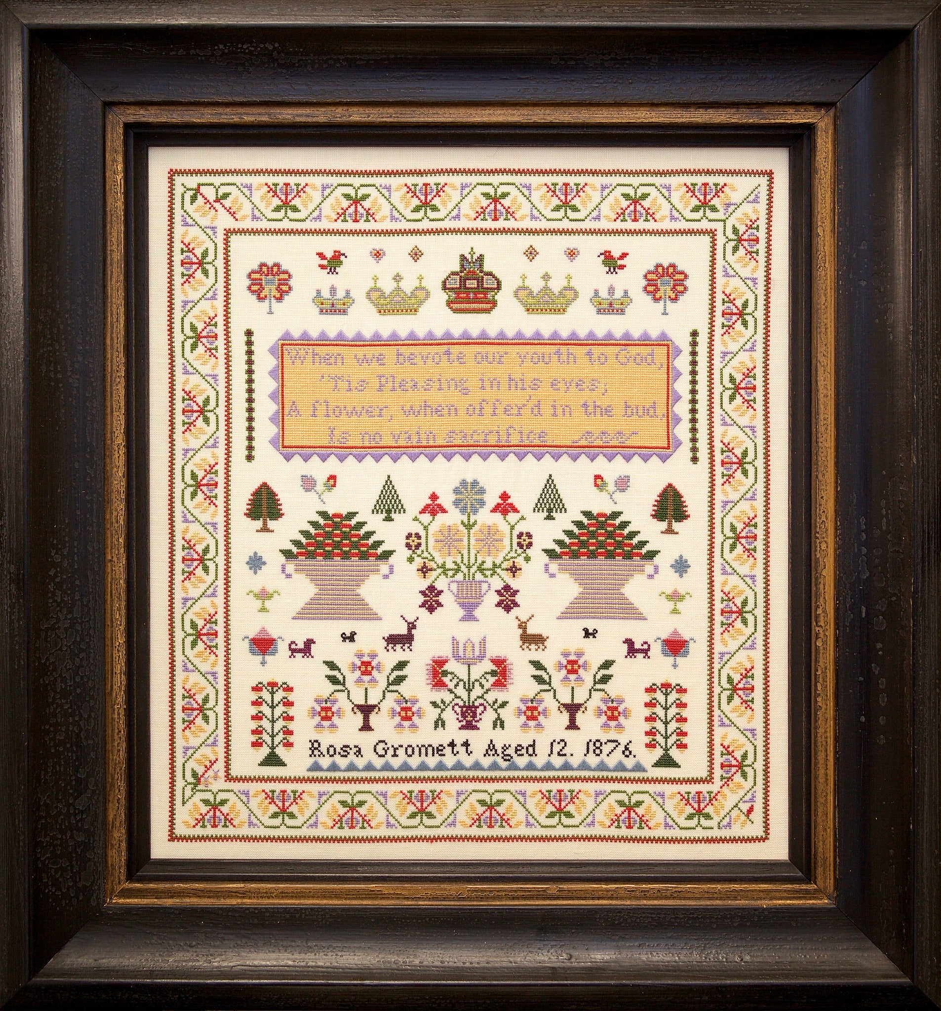 Rosa Gromett 1876 - Reproduction Sampler by Hands Across the Sea Samplers